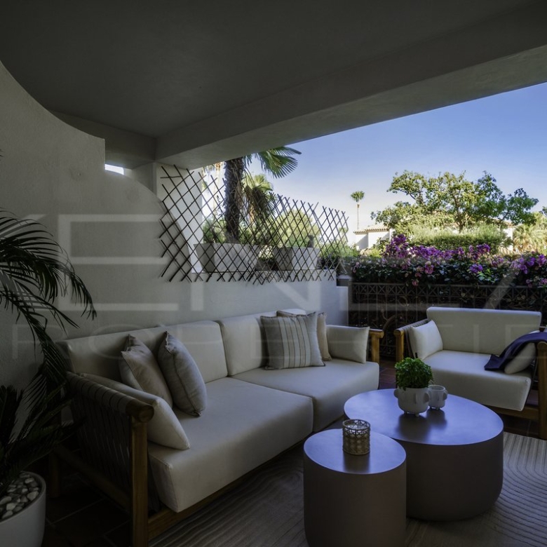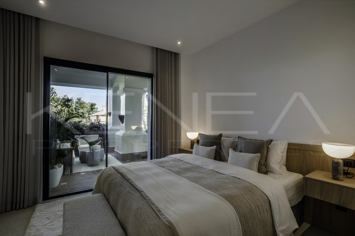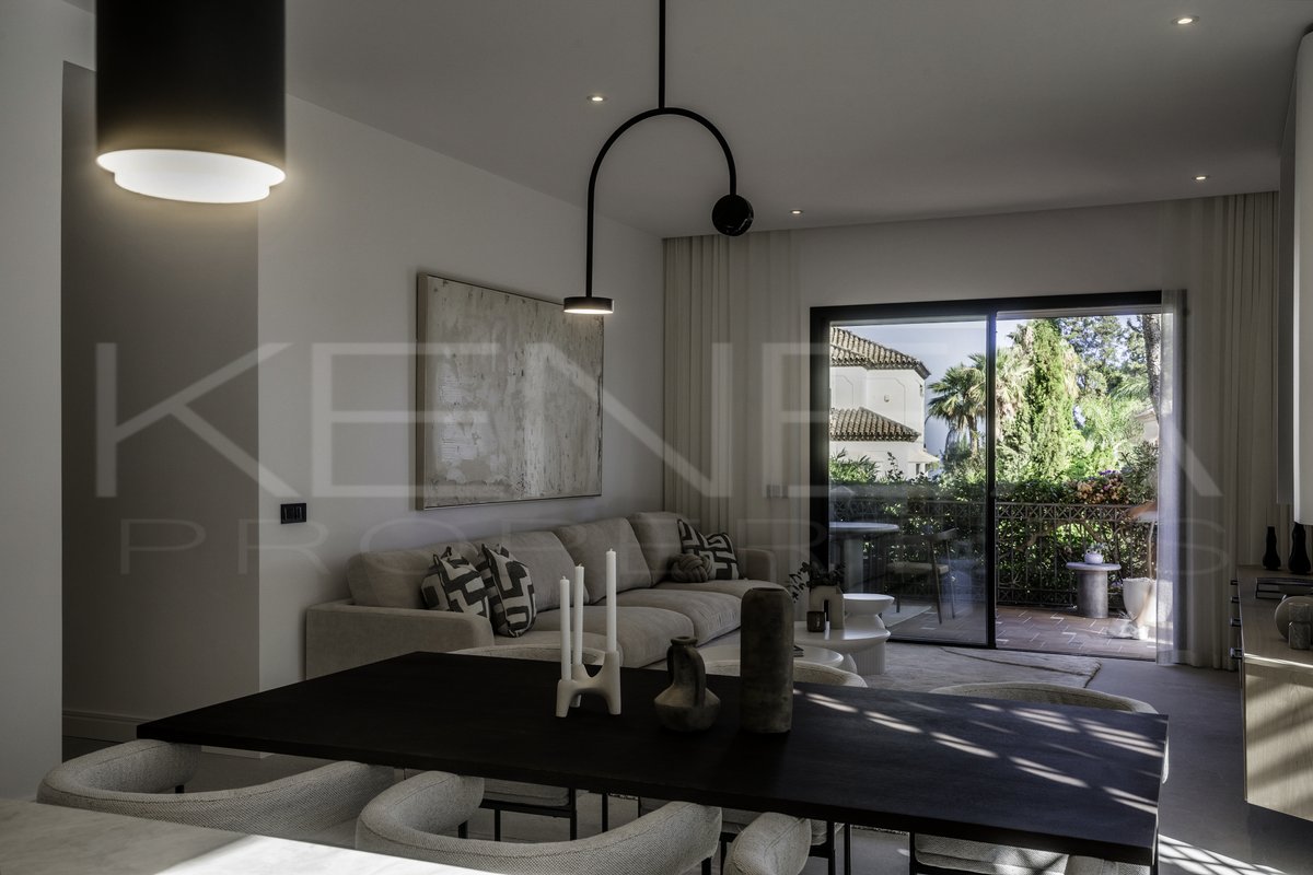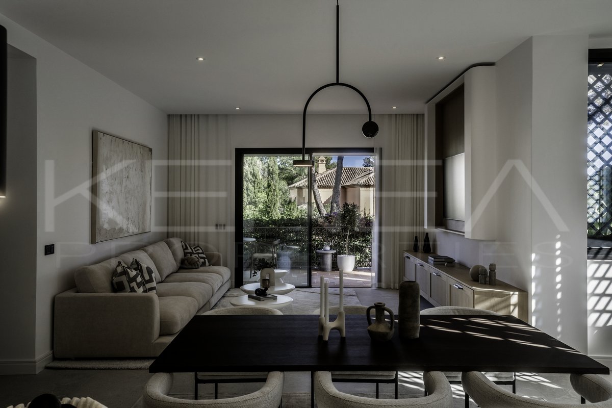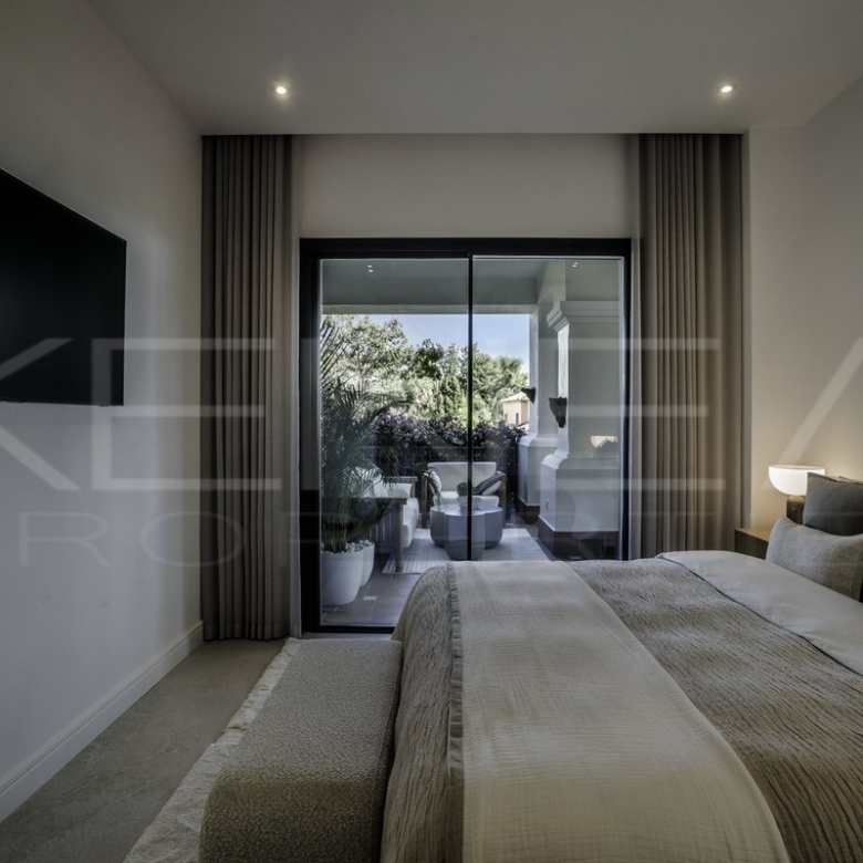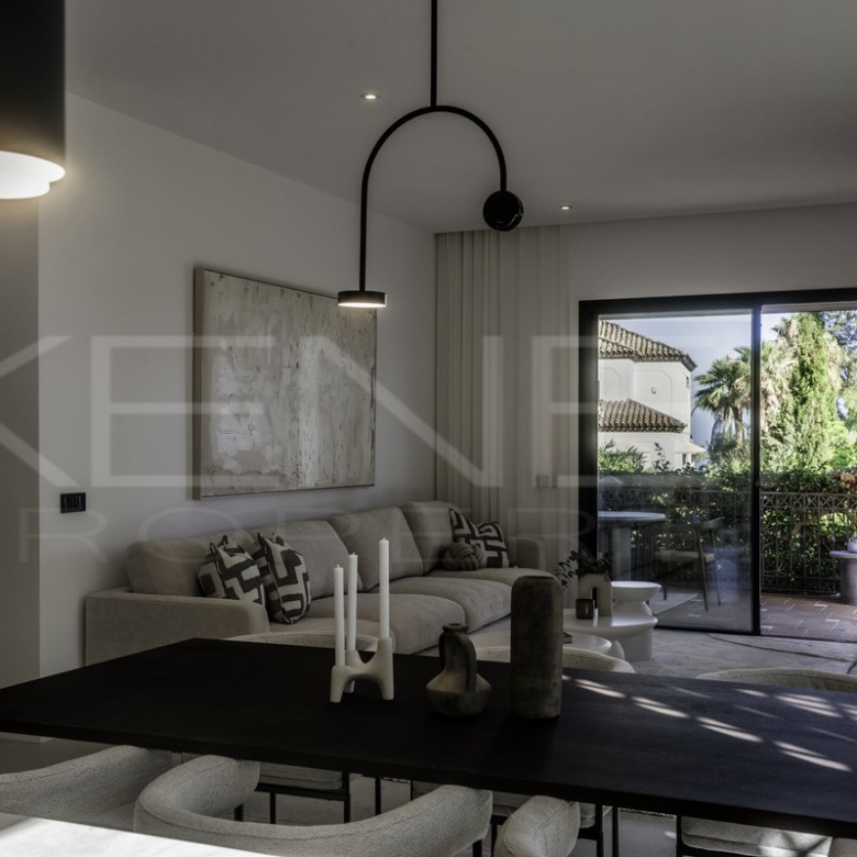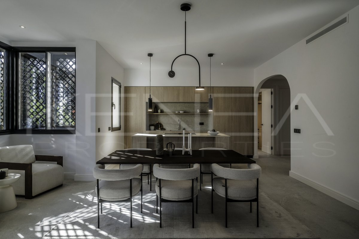 Presentamos Altos Reales 1, un apartamento recién reformado de 3 dormitorios y 3 baños en planta baja, ubicado en la exclusiva urbanización Altos Reales de Sierra Blanca. Cada detalle de este apartamento ha sido cuidadosamente diseñado para crear una experiencia de vida única: elegantes suelos, techos altos, carpintería y armarios empotrados de madera contemporáneos, tejidos y texturas naturales, y una cocina abierta de diseño con electrodomésticos Miele.