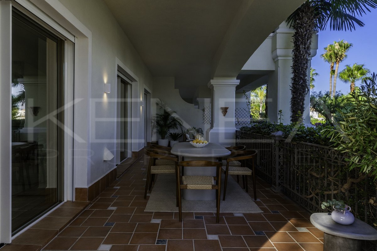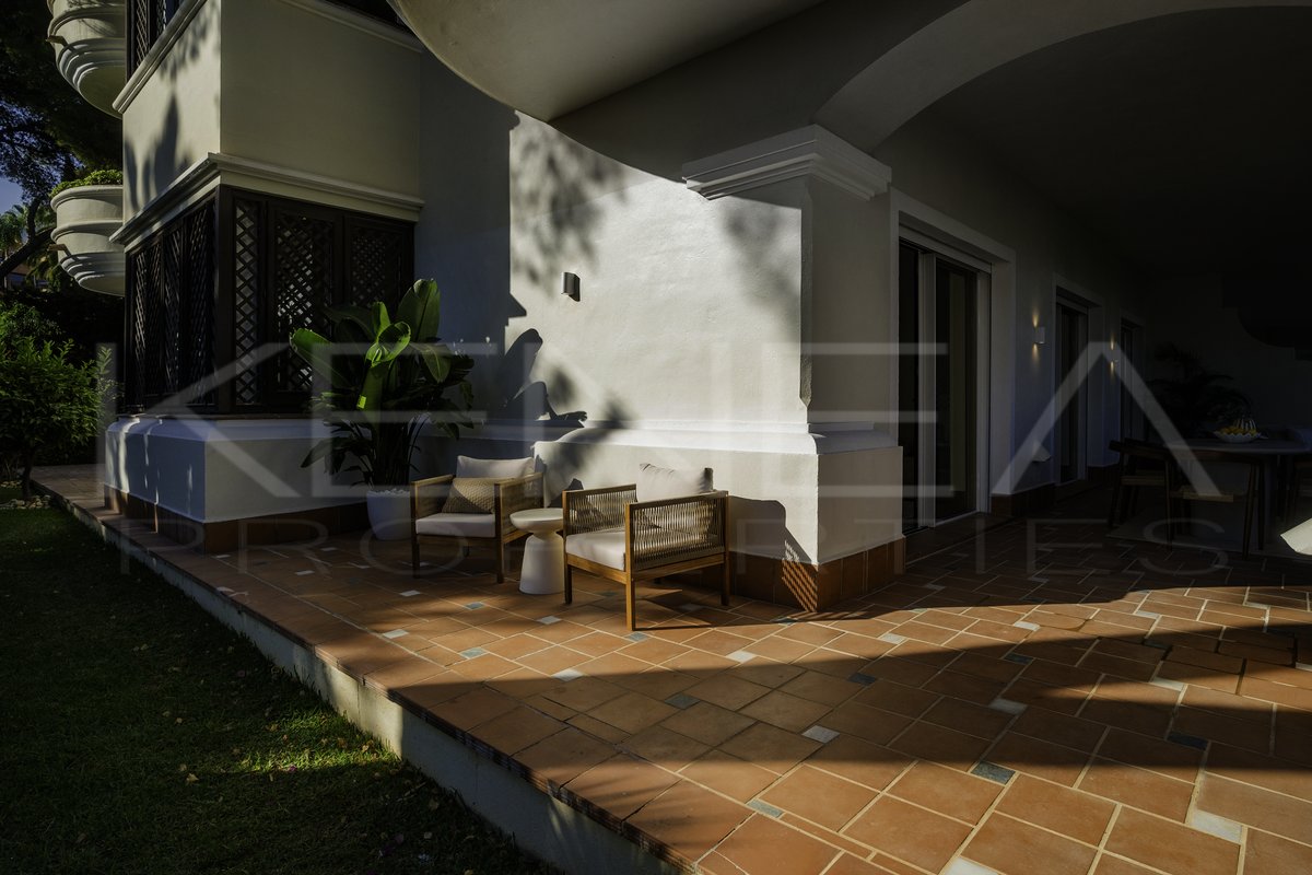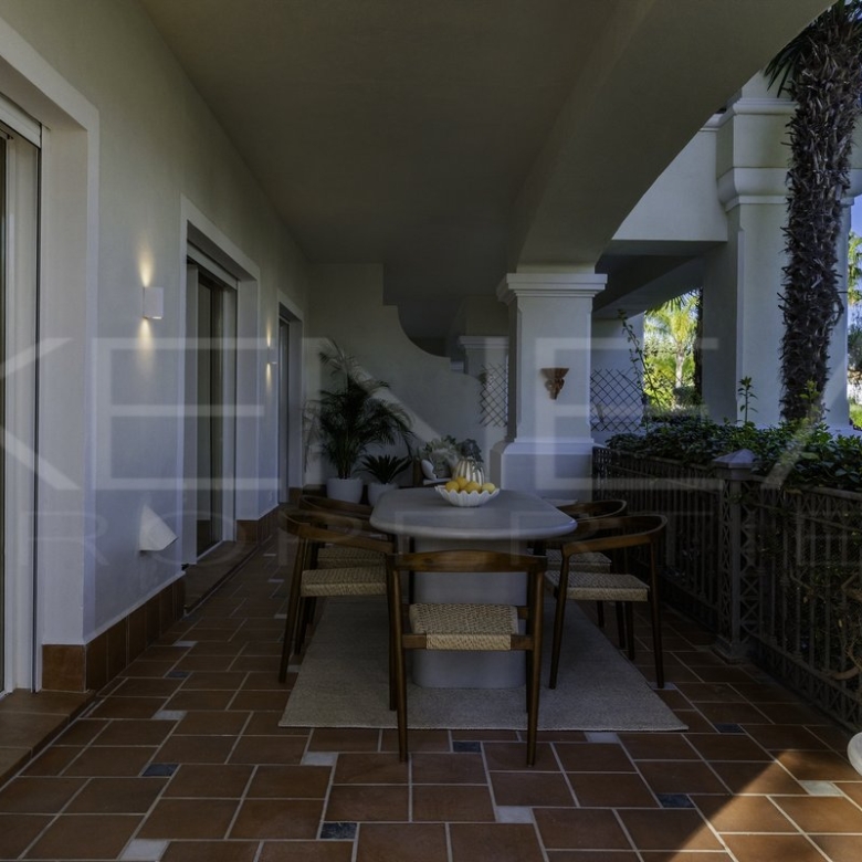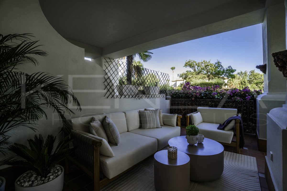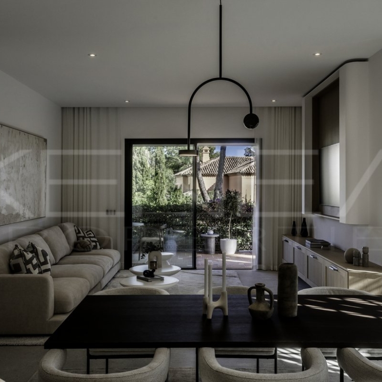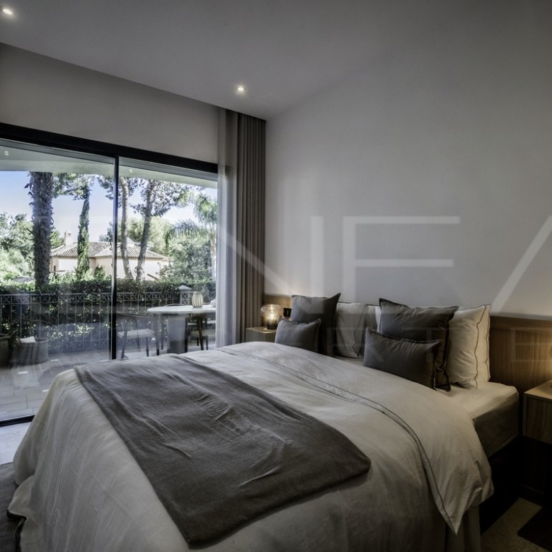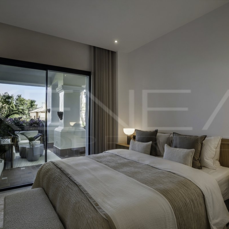 Presentamos Altos Reales 1, un apartamento recién reformado de 3 dormitorios y 3 baños en planta baja, ubicado en la exclusiva urbanización Altos Reales de Sierra Blanca. Cada detalle de este apartamento ha sido cuidadosamente diseñado para crear una experiencia de vida única: elegantes suelos, techos altos, carpintería y armarios empotrados de madera contemporáneos, tejidos y texturas naturales, y una cocina abierta de diseño con electrodomésticos Miele.