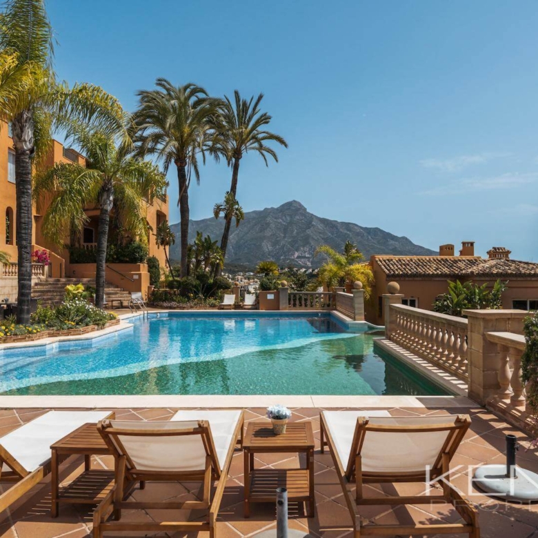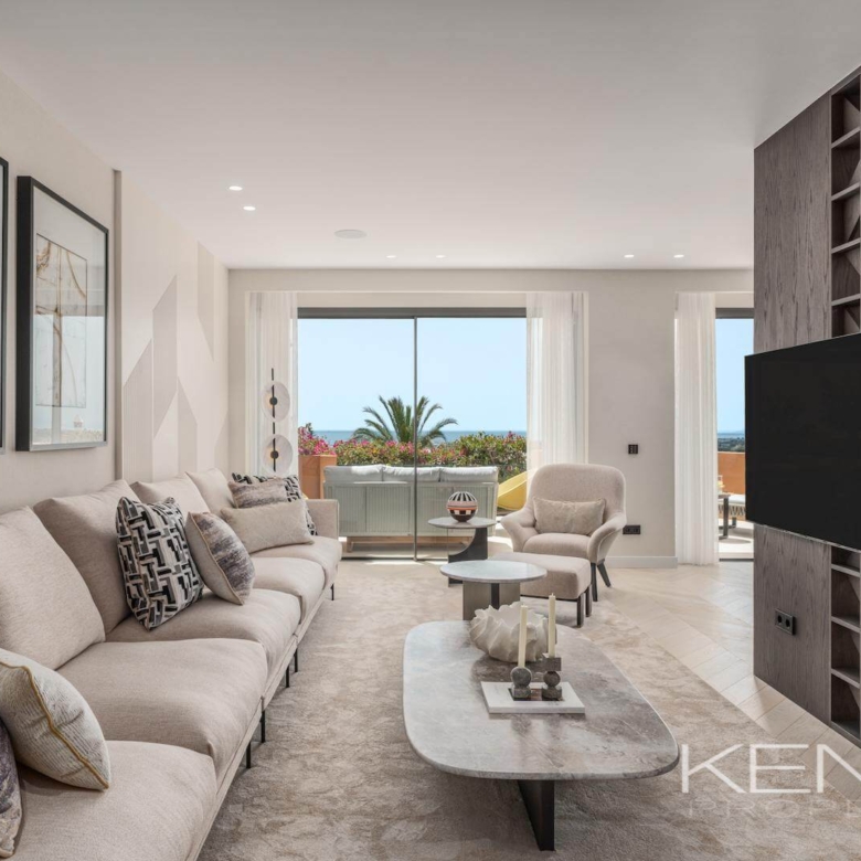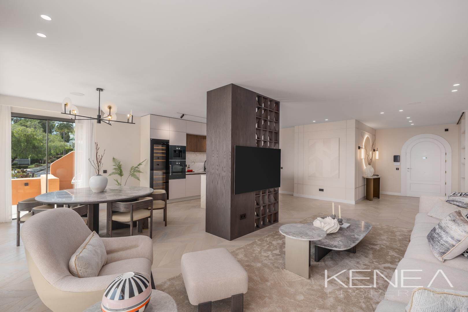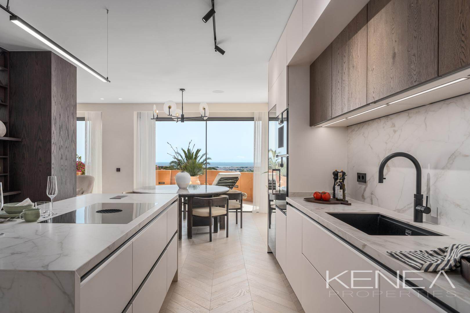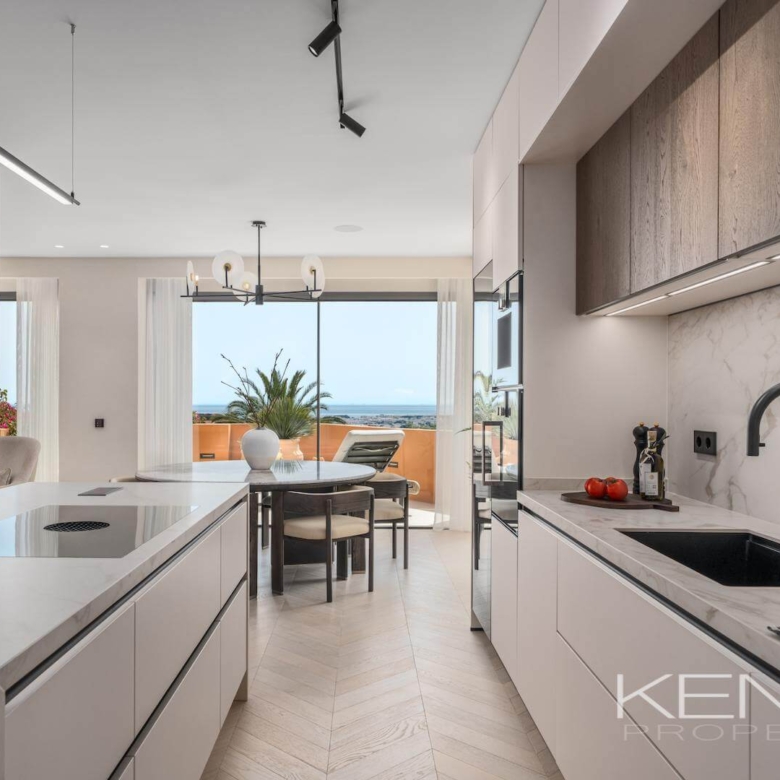 Bienvenido a Les Belvederes A5, un apartamento en planta baja elevada con muchísimo estilo, situado en la exclusiva zona de La Cerquilla, Nueva Andalucía. Desde aquí tienes unas vistas de postal al Mediterráneo, las montañas y los campos de golf que lo rodean.