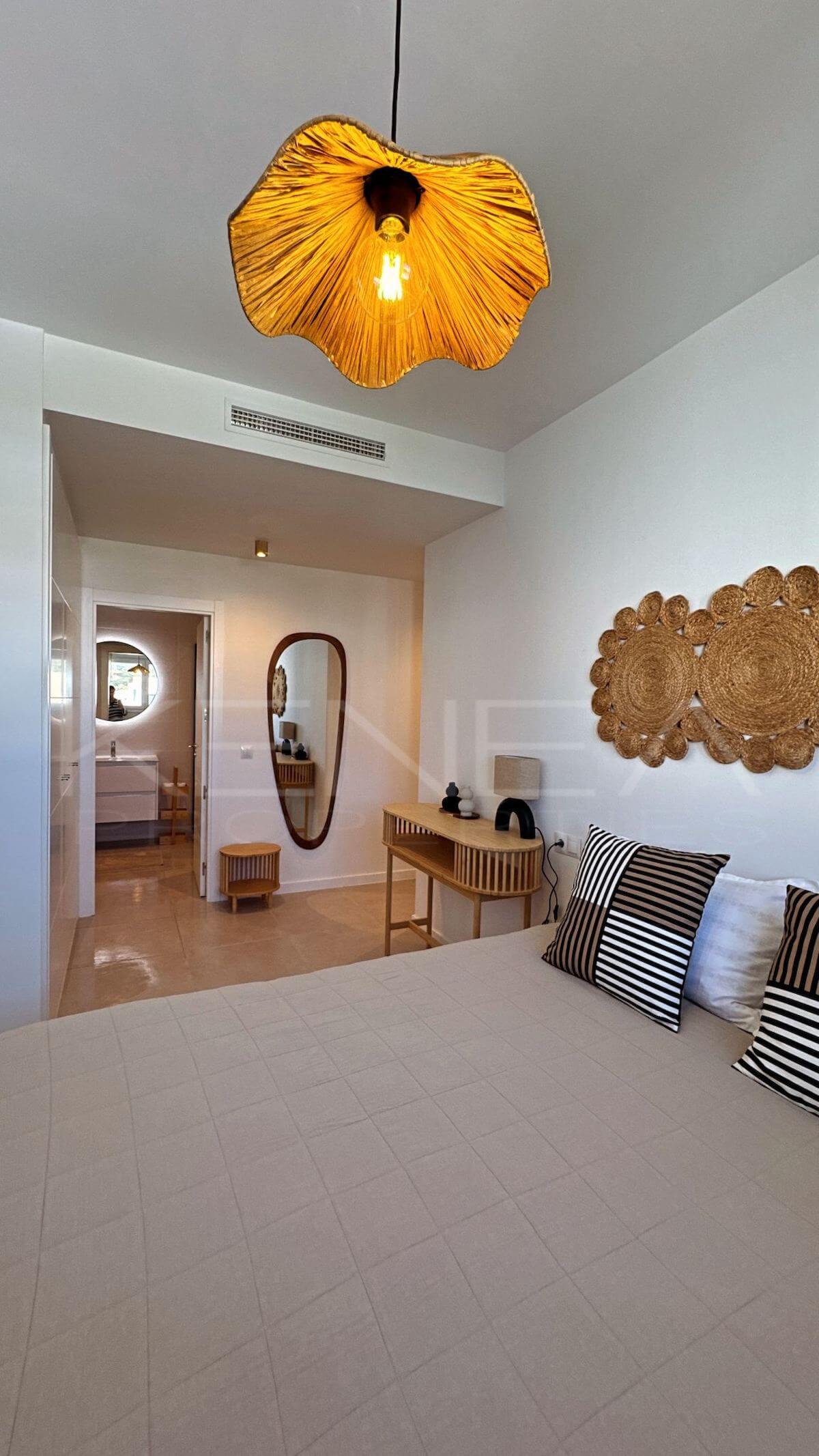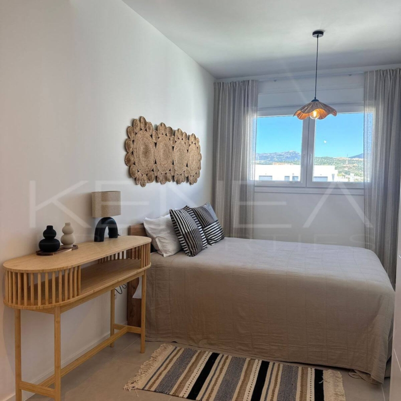 Apartamento de obra nueva con espectaculares vistas panorámicas al mar, situado a pocos minutos del puerto deportivo de Estepona, en una de las zonas con más proyección de la Costa del Sol. A solo 300 metros de la playa, es una opción ideal tanto para vivir todo el año como para inversión en alquiler vacacional y de larga temporada.