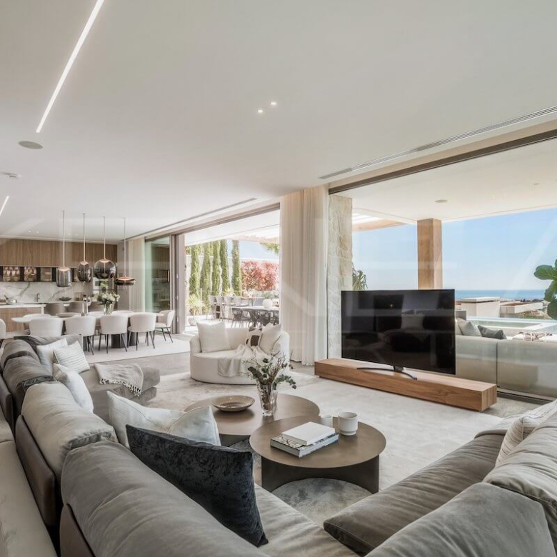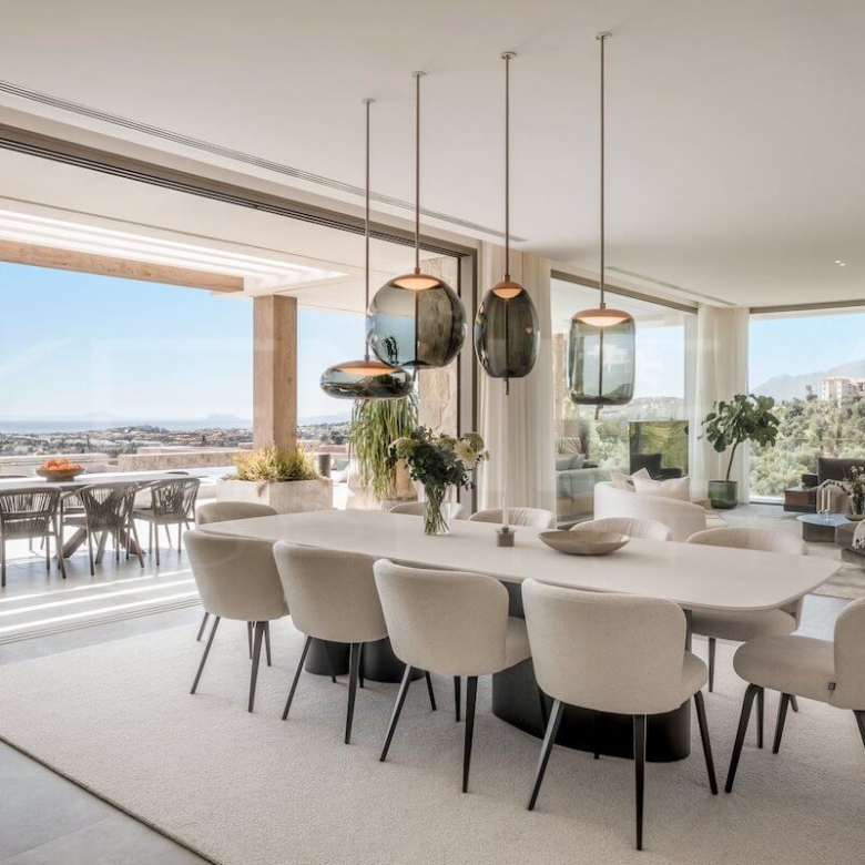 Desde que accedes a la vivienda, te recibe un horizonte infinito con vistas abiertas al mar Mediterráneo y la costa africana. Los interiores diáfanos, las ventanas de suelo a techo y la perfecta integración entre el interior y el exterior llenan cada rincón de luz natural.