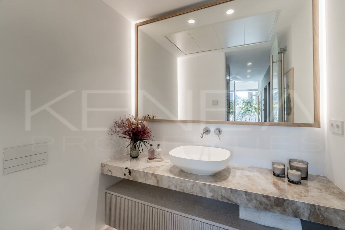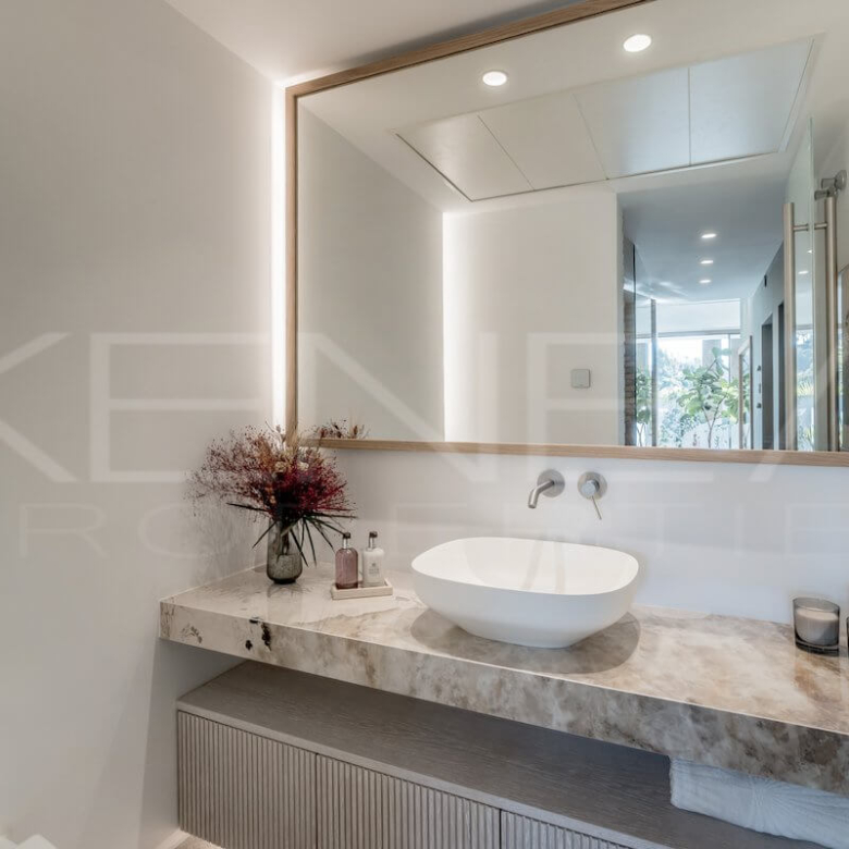 La propiedad alberga 6 dormitorios amplios, todos con acabados de primera calidad, además de 7 baños completos y 3 aseos adicionales. La suite principal ofrece vistas al mar, vestidor de diseño y un baño en suite con ambientes de spa.